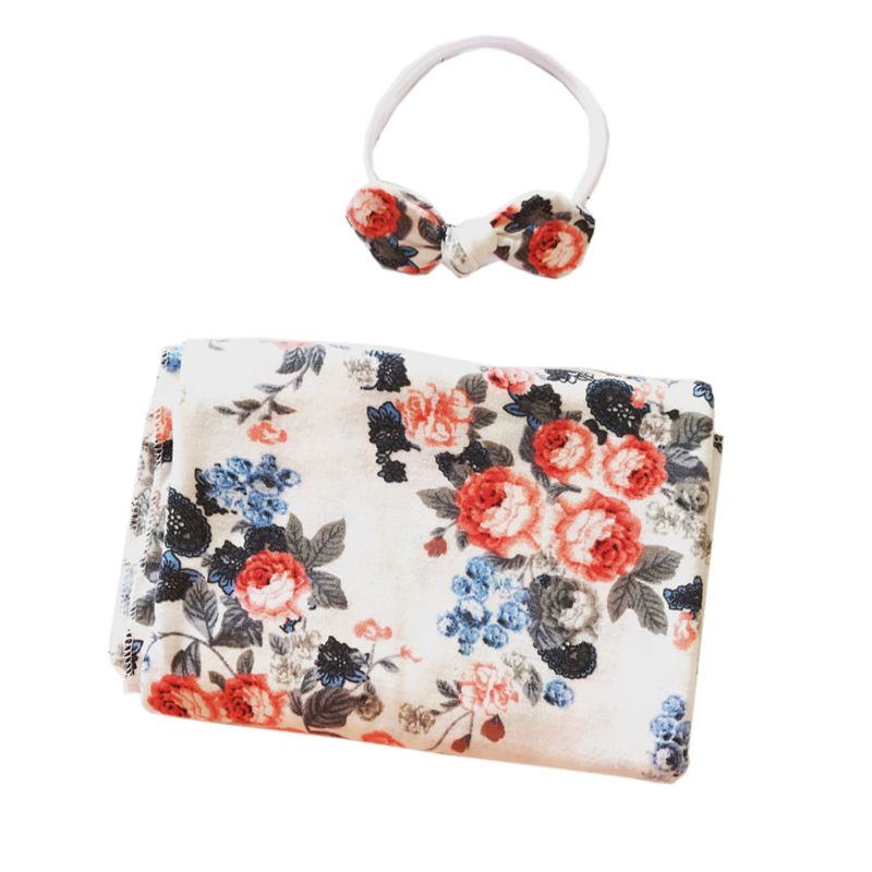 2 pièces/ensemble -né bébé recevant couverture bandeau/chapeau coton lange d'emmaillotage serviette 57BF