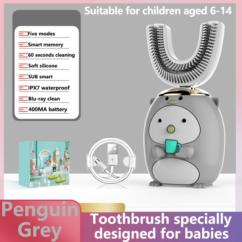 Brosse à dents électrique ultrasonique 360 nano silicone en forme de u pour enfants, brosse à dents automatique, rechargeable par usb, sans fil, intelligente