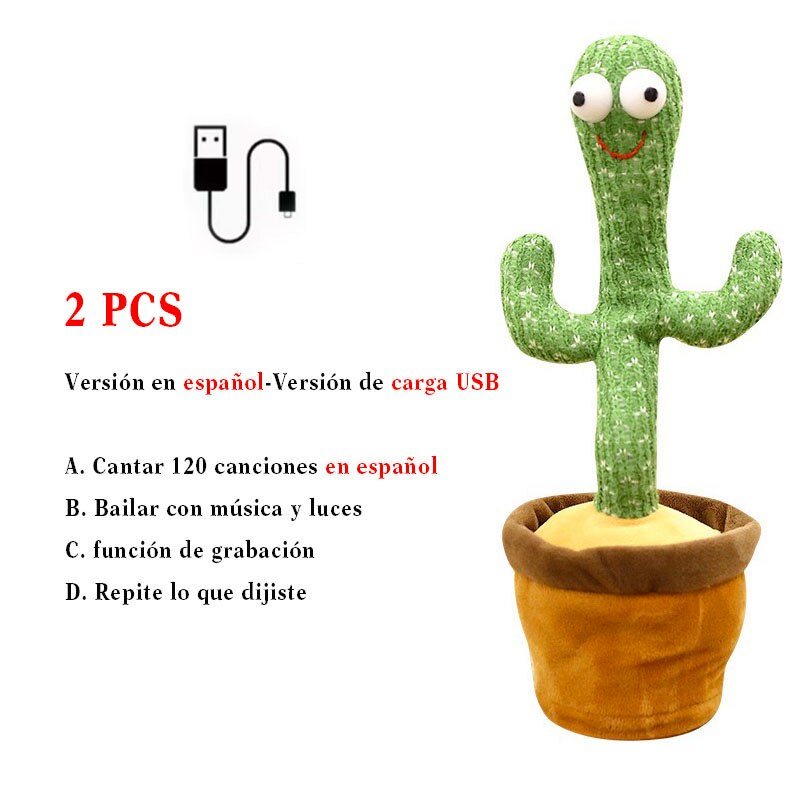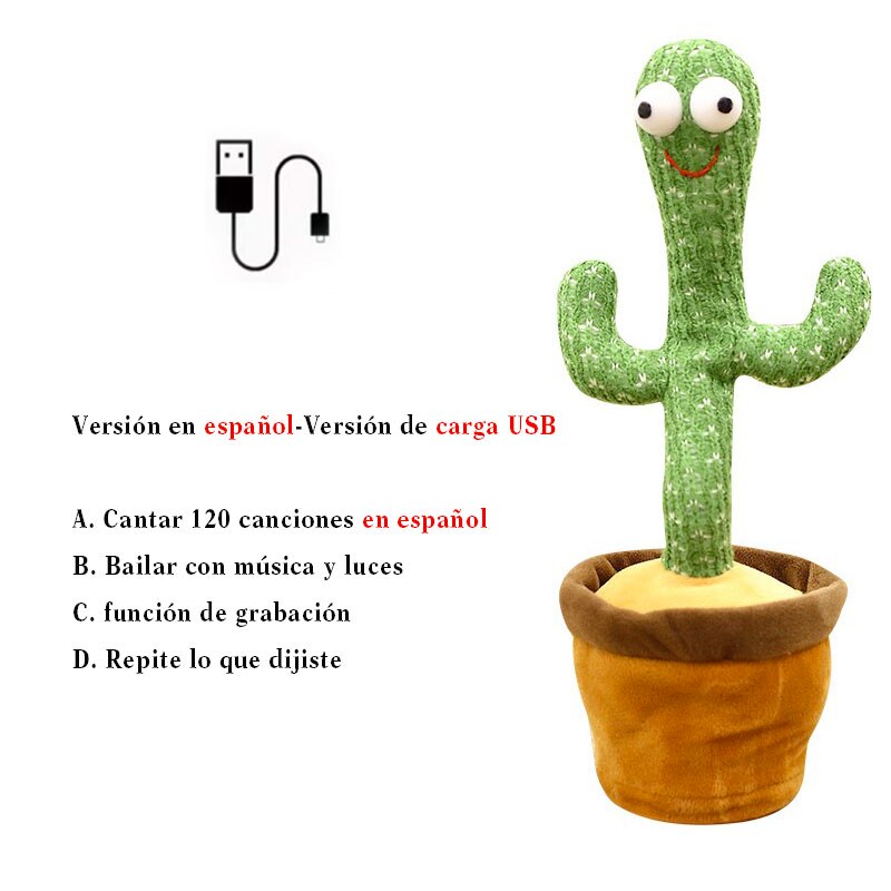 cactus dansant usb Rechargeable avec son en espagnol pour bébés, jouet Parlant russe