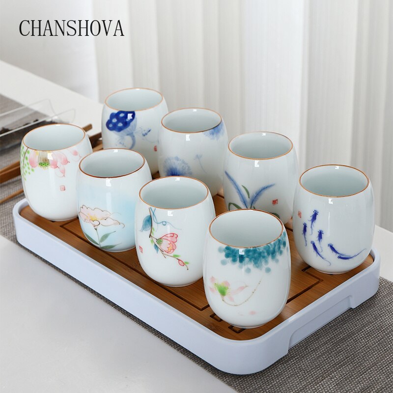 CHANSHOVA tasse à thé en céramique H271 | Motifs multiples traditionnels de Style chinois, tasse à thé en porcelaine blanche de 190ml