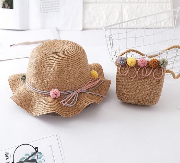 Chapeau et sacs en paille à fleurs pour enfants, ensemble deux pièces décontracté pour filles, sac à bandoulière + chapeau de soleil pour bébé, plage, panama, gorros