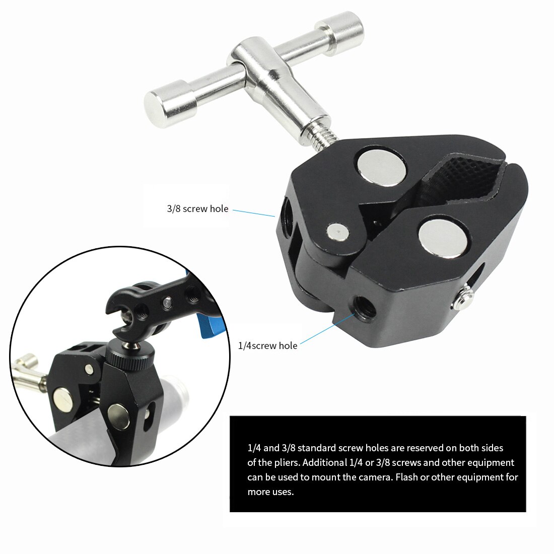 Chaussure chaude multifonction à double tête sphérique, pour trépied 1/4 pouces, bras magique, adaptateur Super pince articulé pour moniteur, lumière LED, appareil photo DSLR