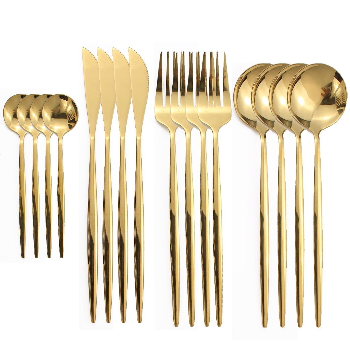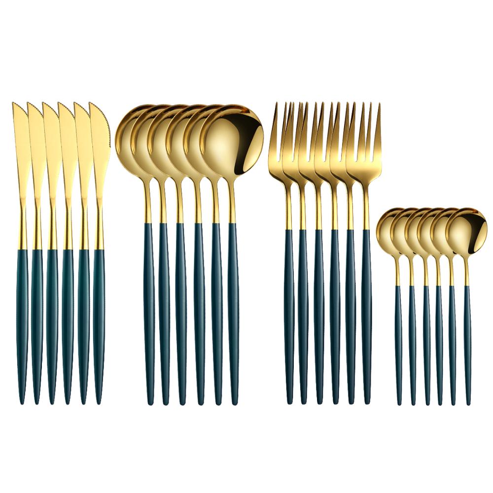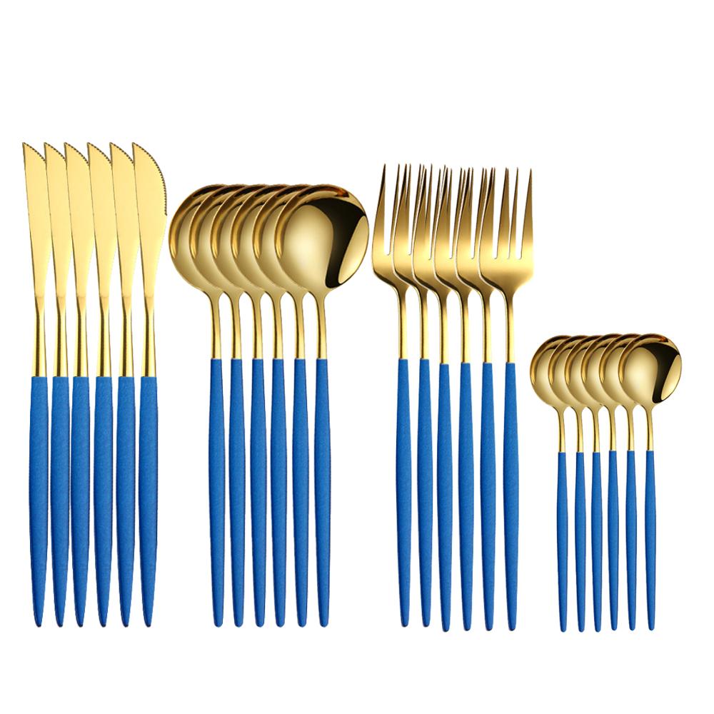 Couverts en acier inoxydable 18/10, 16 pièces, violet et or, fourchette, couteau, cuillère, vaisselle de table, argenterie