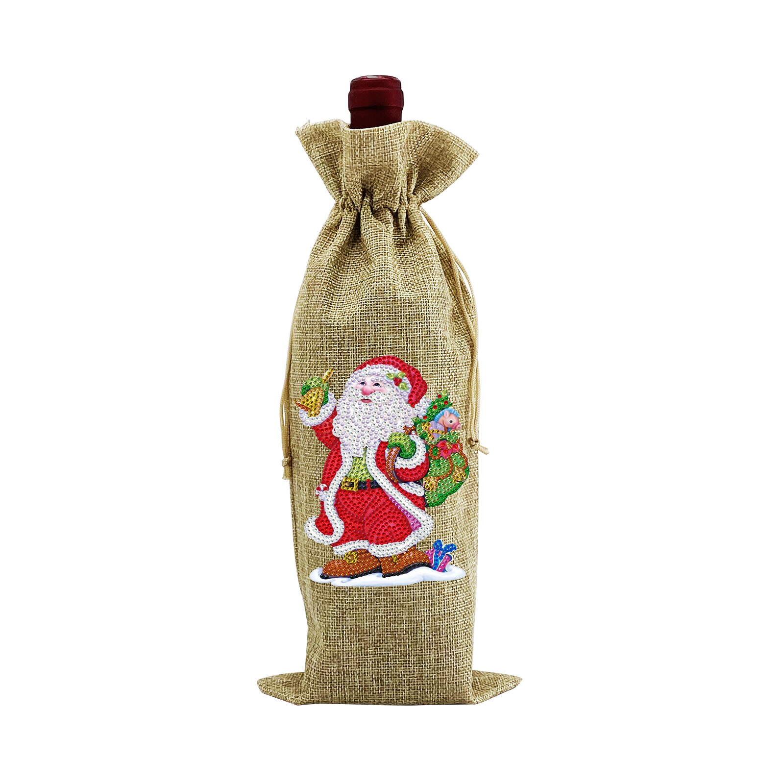 Couverture 5D pour bouteille de vin, sac, peinture diamant, dessin animé imprimé, verre de Champagne, bricolage, décoration de noël pour Table et maison