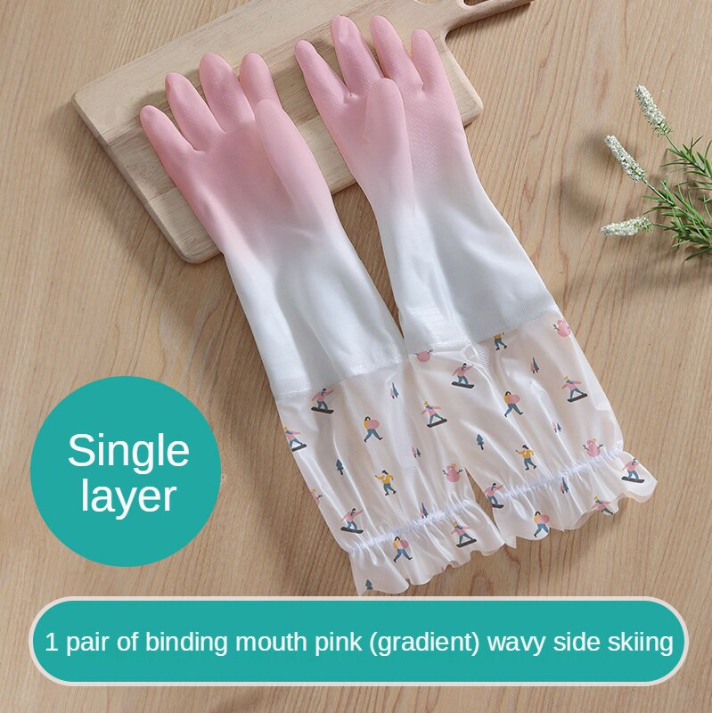 Gants en caoutchouc pour femmes, cuisine, vêtements de lavage épais, vaisselle, ménage étanche, durables, Plus des gants en Latex de velours