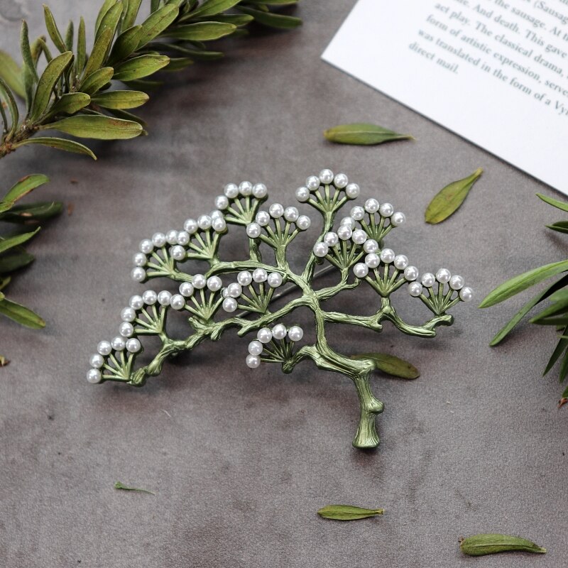 HUANZHI Vintage émail vert couleur plante perles broche arbre Lotus feuille myrtille fleur bambou broche pour femmes bijoux