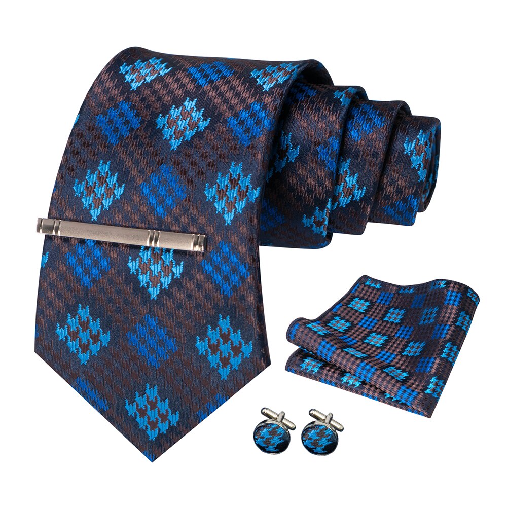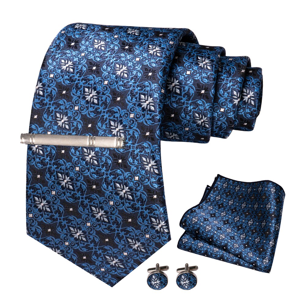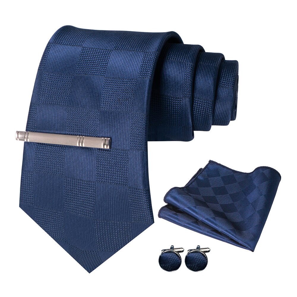 JEMYGINS – cravate en soie pour hommes, ensemble de boutons de manchette, à carreaux, rayures, bleu marine, 100%