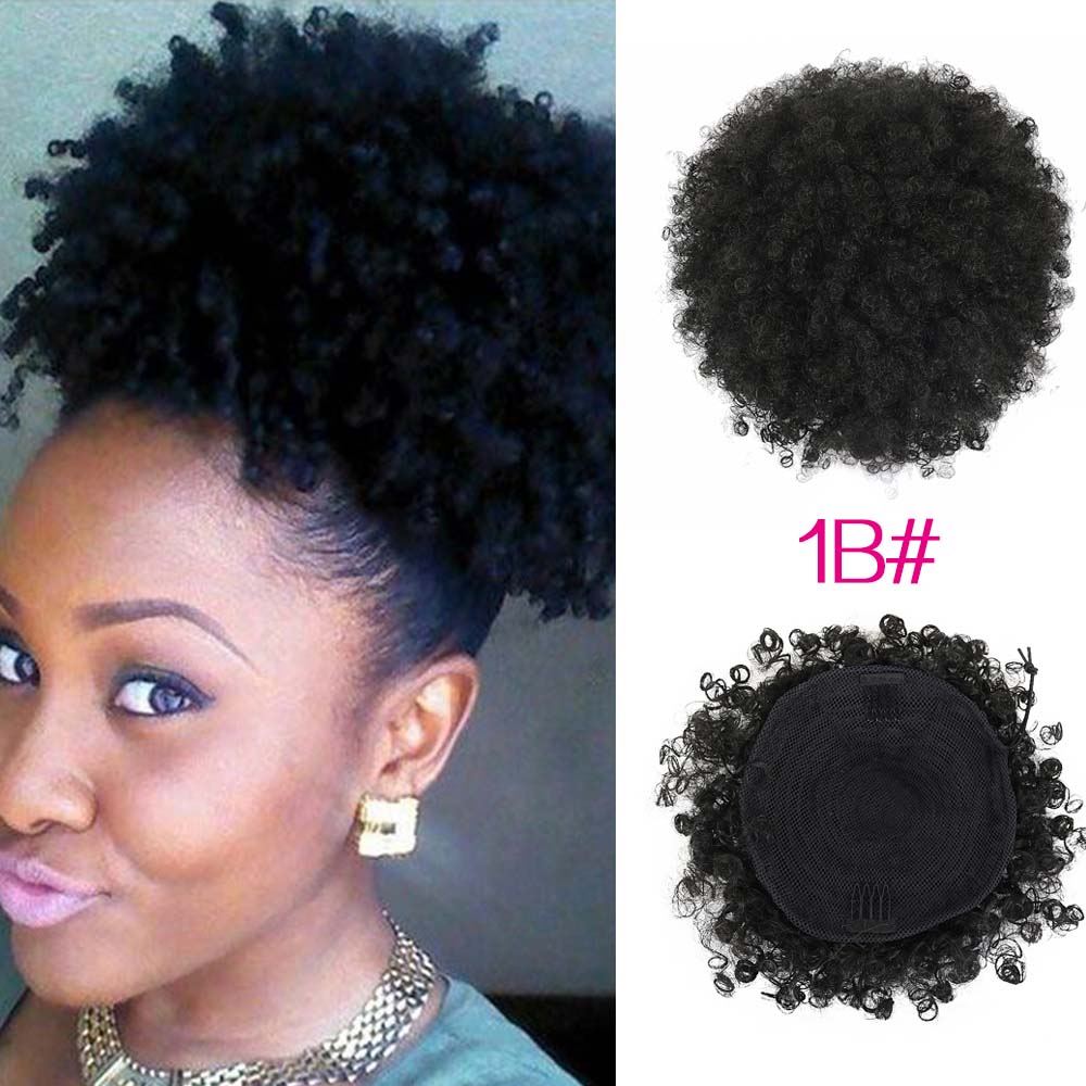 Perruque afro bouclée synthétique, queue-de-cheval, perruque afro courte crépue, pince à cheveux, chignon bouclé fait de Kanekalon