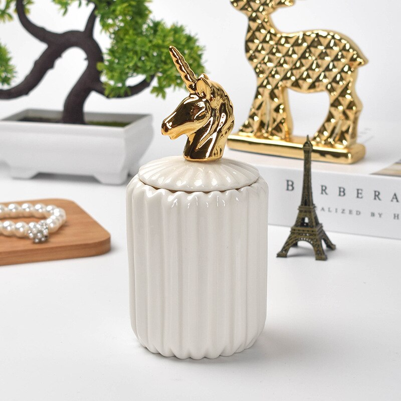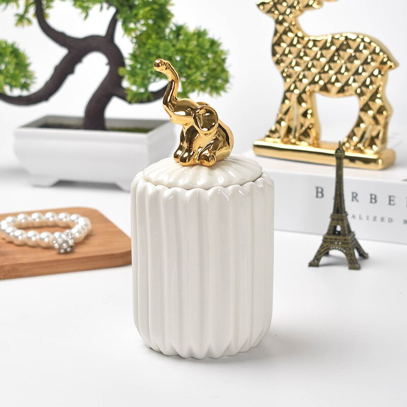Pot de rangement en céramique plaqué or, pot de rangement, commode décorative, bijoux, cosmétiques, boîte de rangement, Animal mignon, artisanat de bonbons